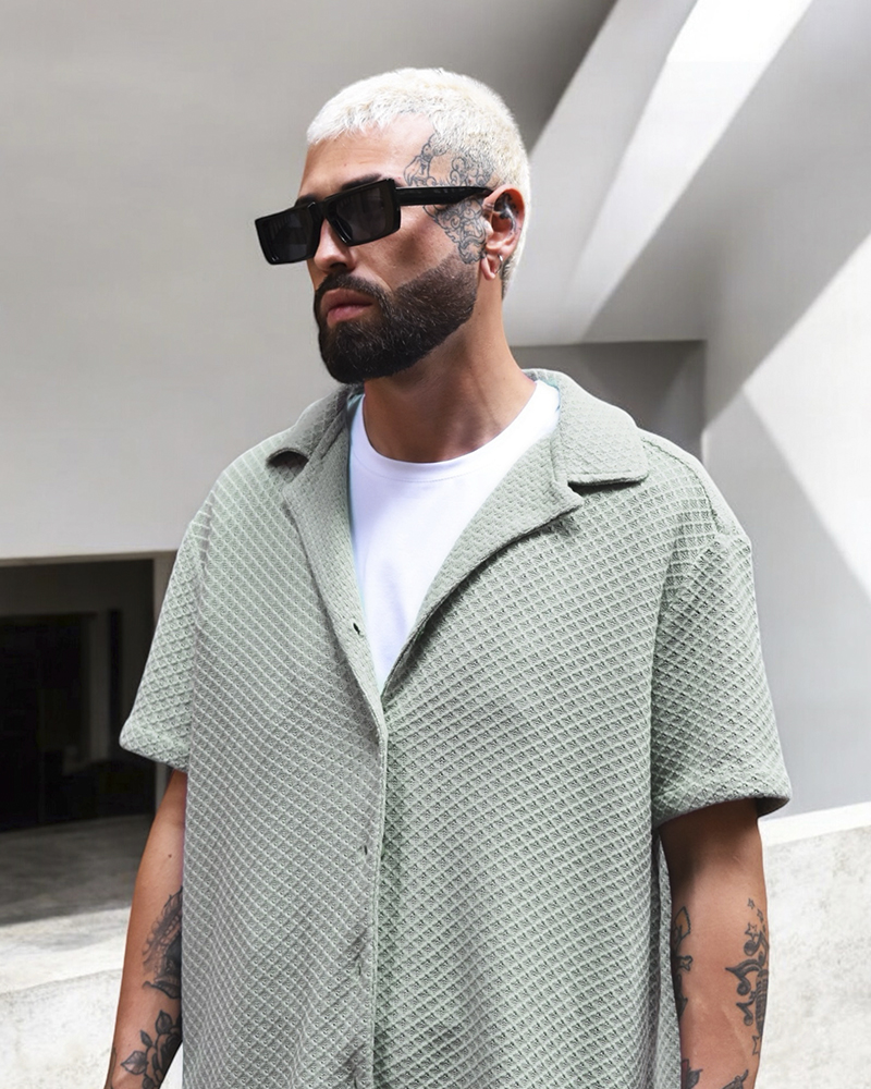 La ligereza del tejido hace de esta camisa tu aliada perfecta para el dinamismo de la vida urbana. Ya sea que estés navegando por las calles de la ciudad o asistiendo a un evento casual chic, esta prenda te mantiene fresco y estilizado sin esfuerzo. Disponible en verde menta y negro.