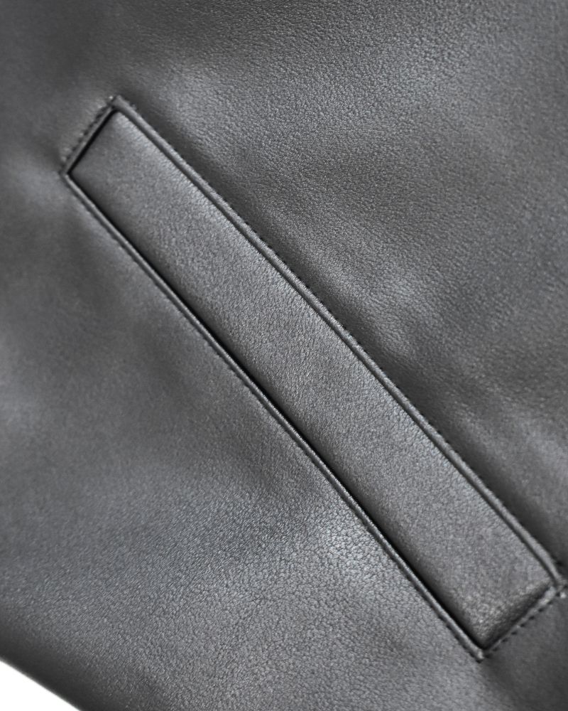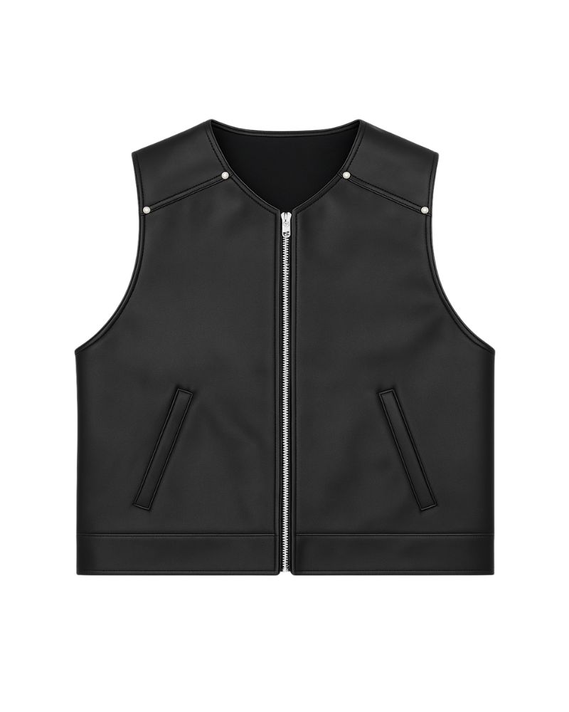 Chaleco horma box fit en eco cuero pesado color negro , con taches metálicos en acero inoxidable.