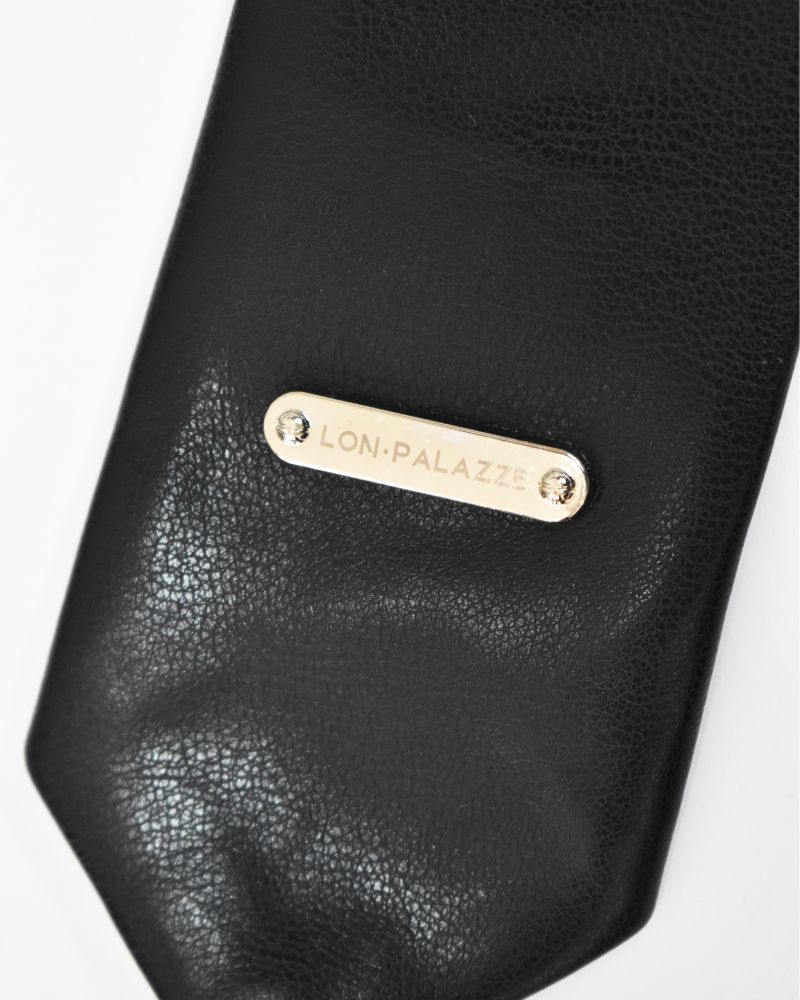 Corbata talla única en eco cuero negro con placa metálica palazze.