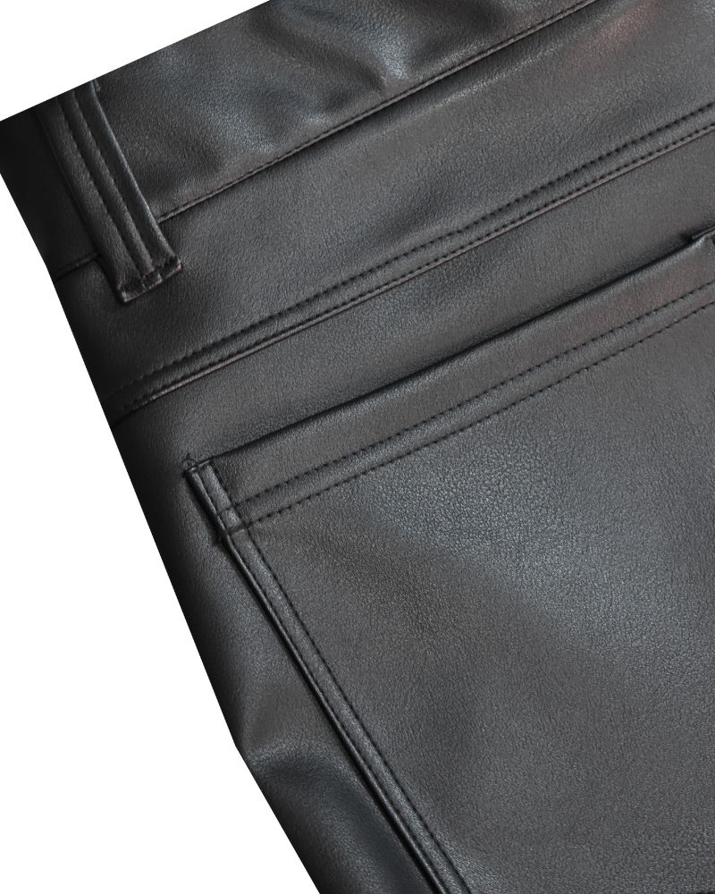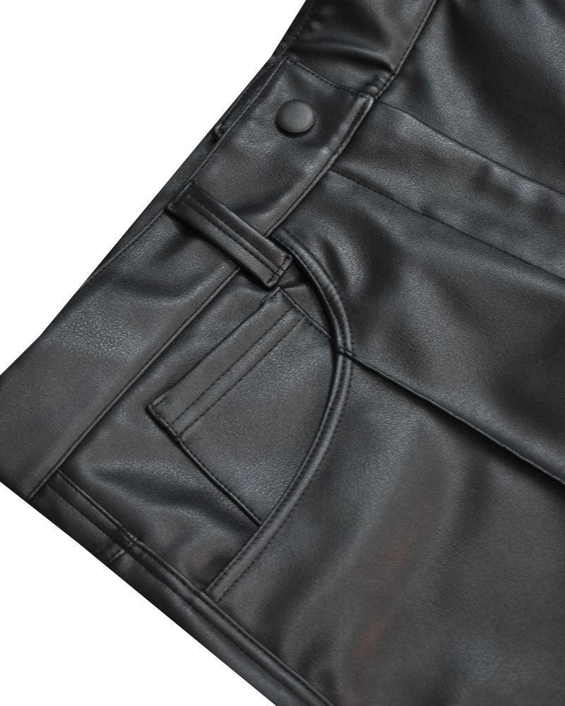 Pantalón horma baggy  en eco cuero color negro  , con cremalleras en botas .